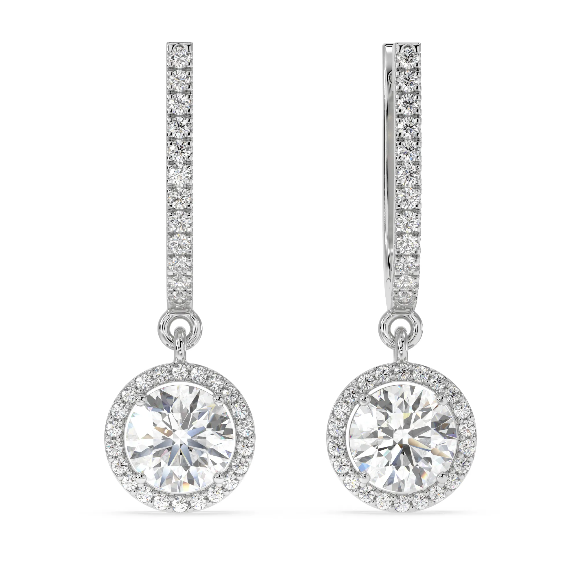 1 Ct Lab Grown Diamond Earrings 6.20 mm Round shaped Lab Grown Diamond Solitaire with 24 x 0.01 Ct Round 1.30 mm
