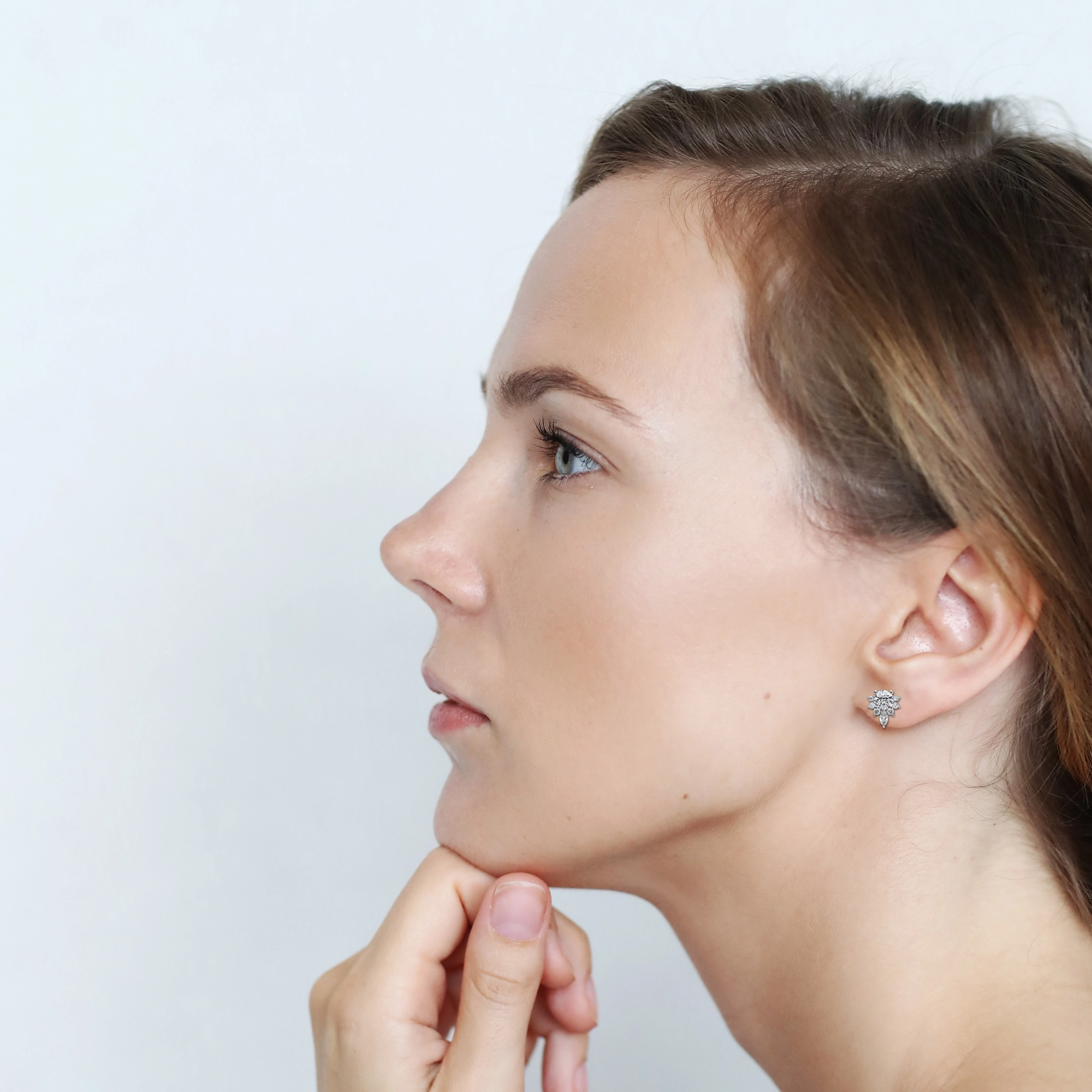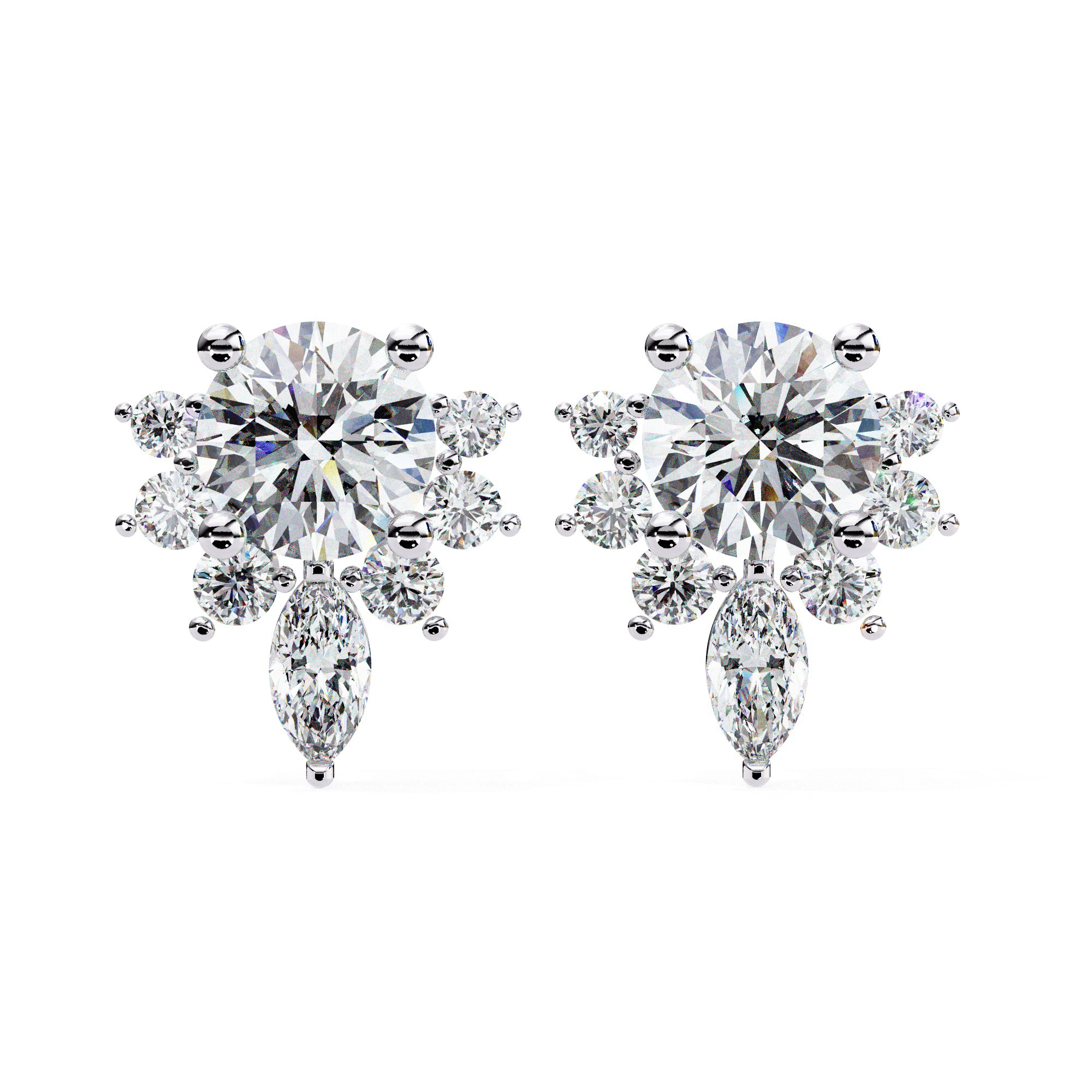 Lab Grown Diamond Earrings 3.90 mm Round shaped Lab Grown Diamond Solitaire with 2 x 0.03 Ct Marquise 3.00 x 1.50 mm
