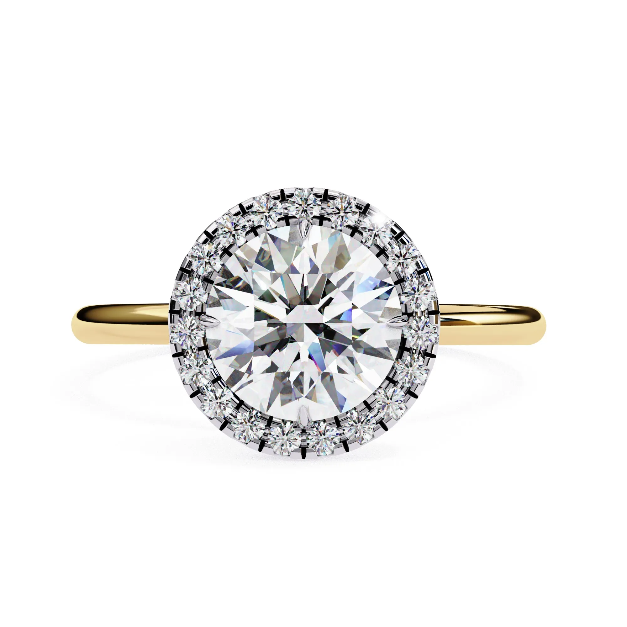 1.5 Ct Lab Grown Diamond Ring 7.40 mm Round shaped Lab Grown Diamond Solitaire with 19 x 0.01 Ct Round 1.30 mm lab grown diamonds.