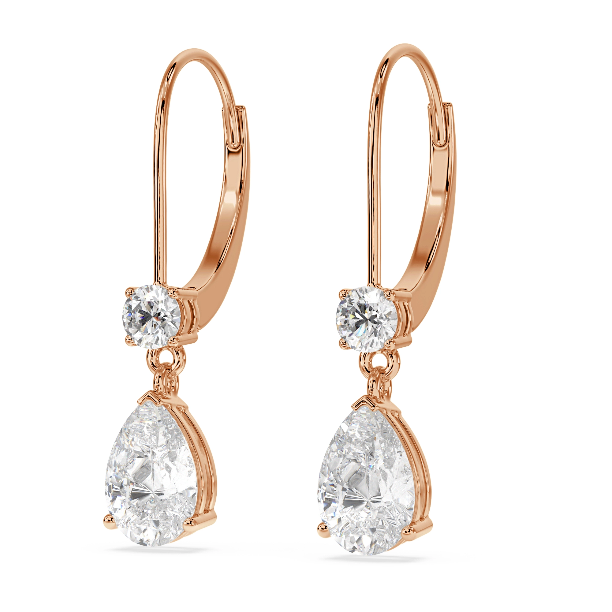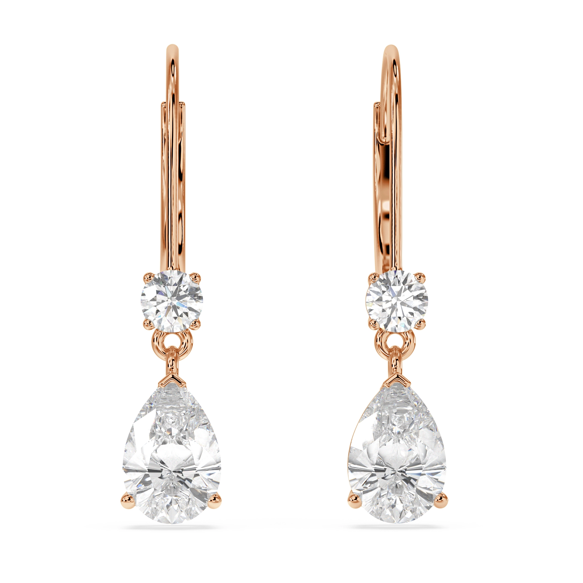 1.5 Ct Lab Grown Diamond Earrings 9.00 x 6.00 mm Pear shaped Lab Grown Diamond Solitaire with Round 3.90 mm lab grown diamonds.