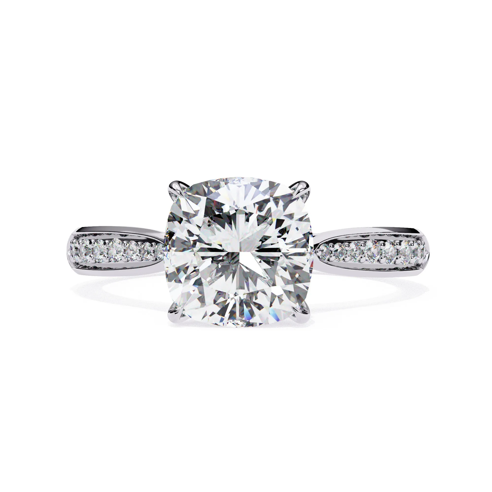 2.5 Ct Lab Grown Diamond Ring 8.00 mm Cushion shaped Lab Grown Diamond Solitaire with 20 x 0.004 Ct Round 0.90 mm