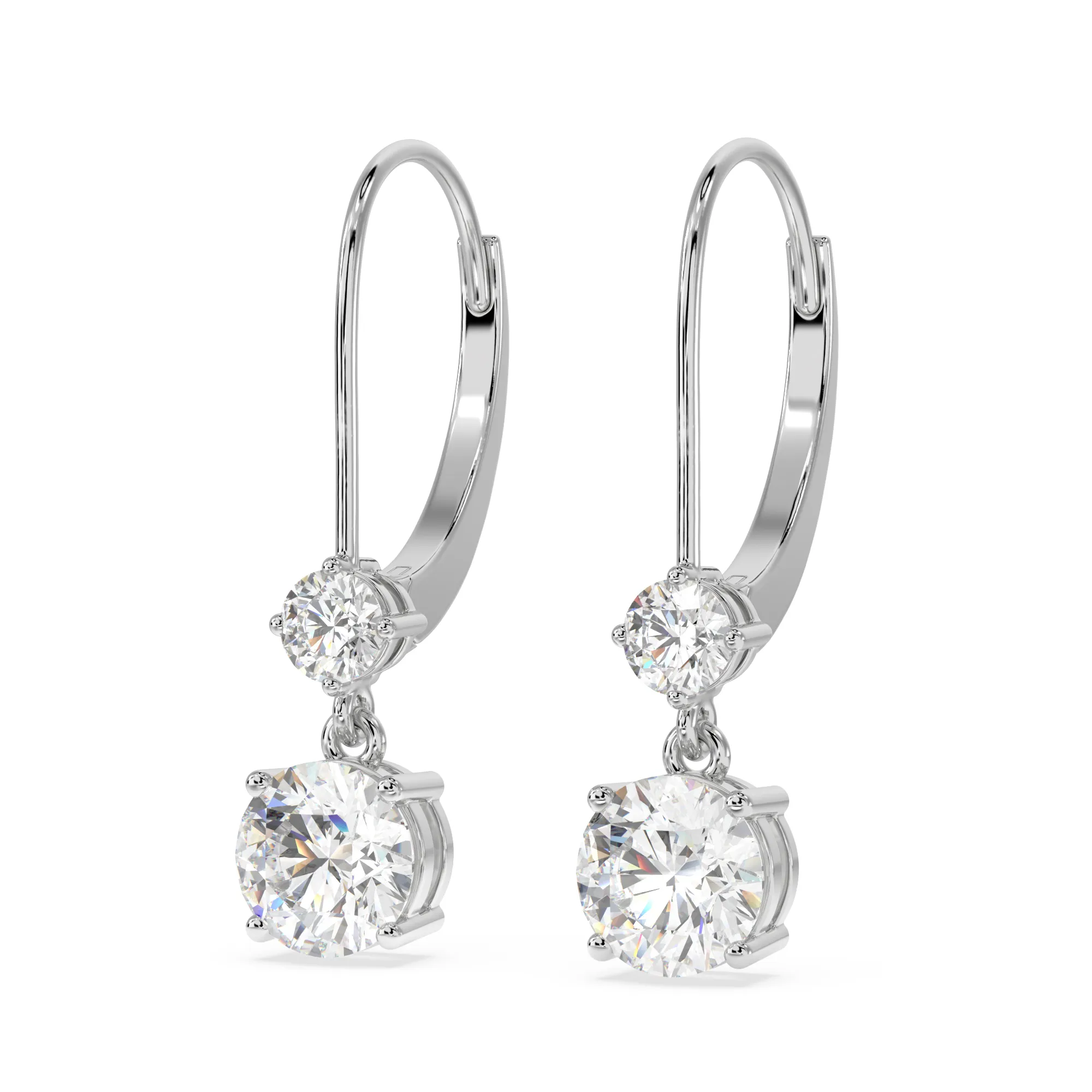 1 Ct Lab Grown Diamond Earrings 6.20 mm Round shaped Lab Grown Diamond Solitaire with Round 3.90 mm lab grown diamonds.