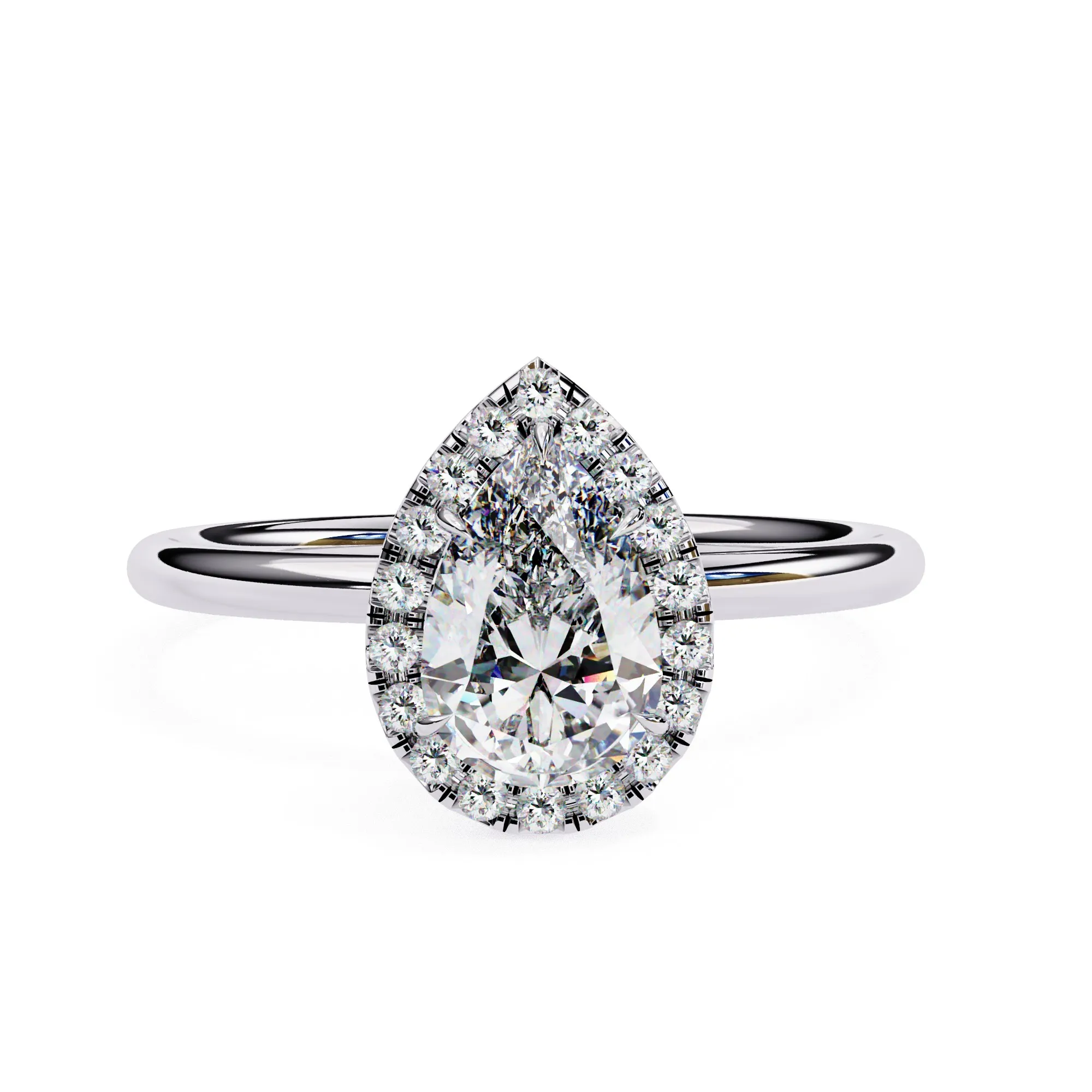 1.5 Ct Lab Grown Diamond Ring 9 x 6 mm Pear shaped Lab Grown Diamond Solitaire with 18 x 0.01 Ct Round 1.30 mm lab grown diamonds.