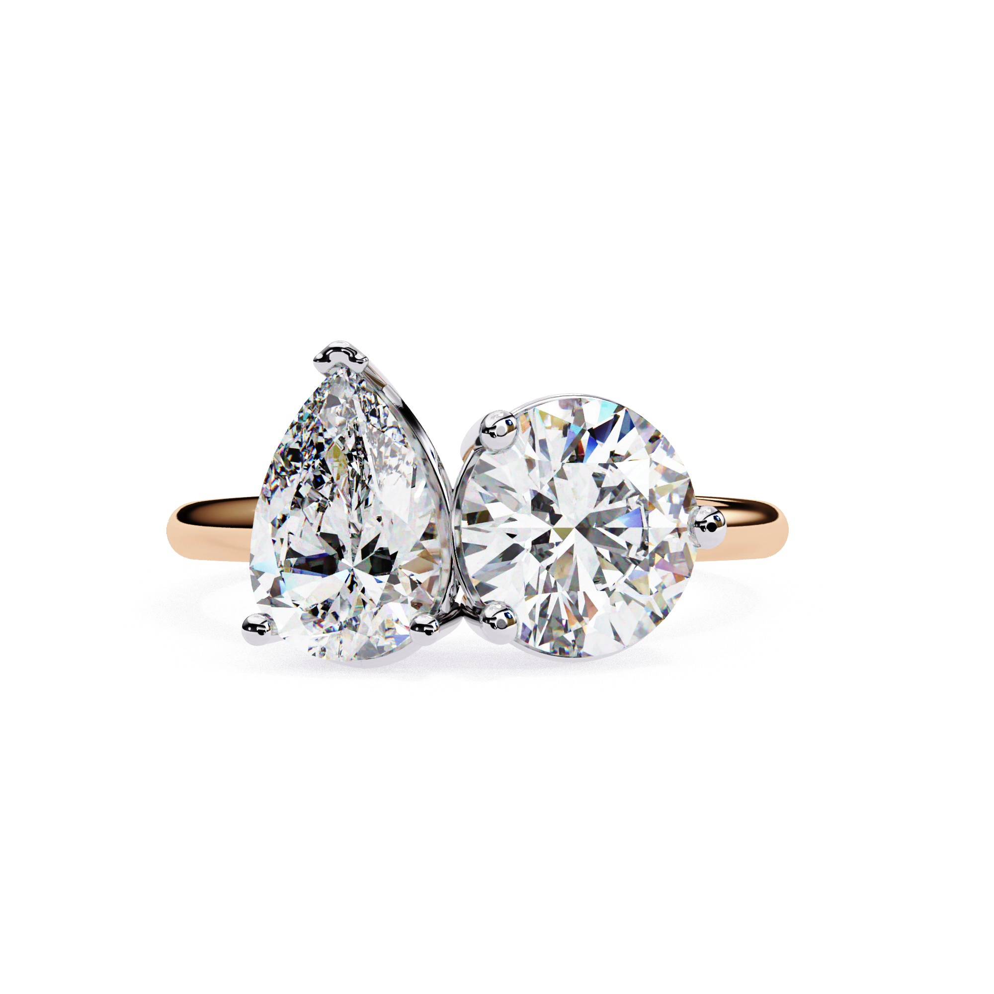 2 Ct Lab Grown Diamond Ring 10 x 7 mm Pear shaped Lab Grown Diamond Solitaire with 1 x 1.9 Ct Round 8.00 mm lab grown diamonds.