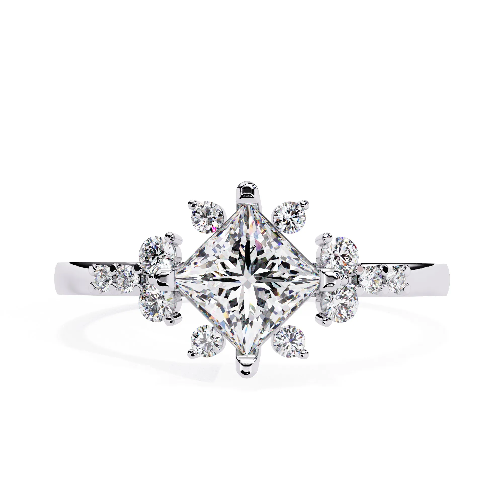 Lab Grown Diamond Ring 5.00 mm Princess shaped Lab Grown Diamond Solitaire with 4 x 0.01 Ct Round 1.30 mm