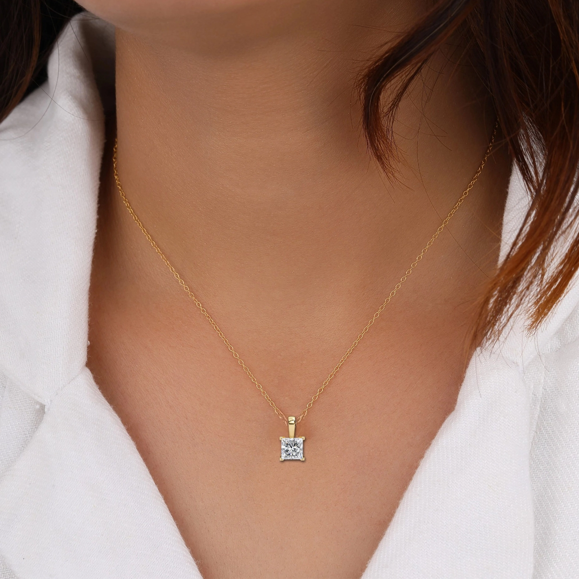 2.7 Ct Lab Grown Diamond Pendant 7.50 mm Princess shaped Lab Grown Diamond Solitaire.