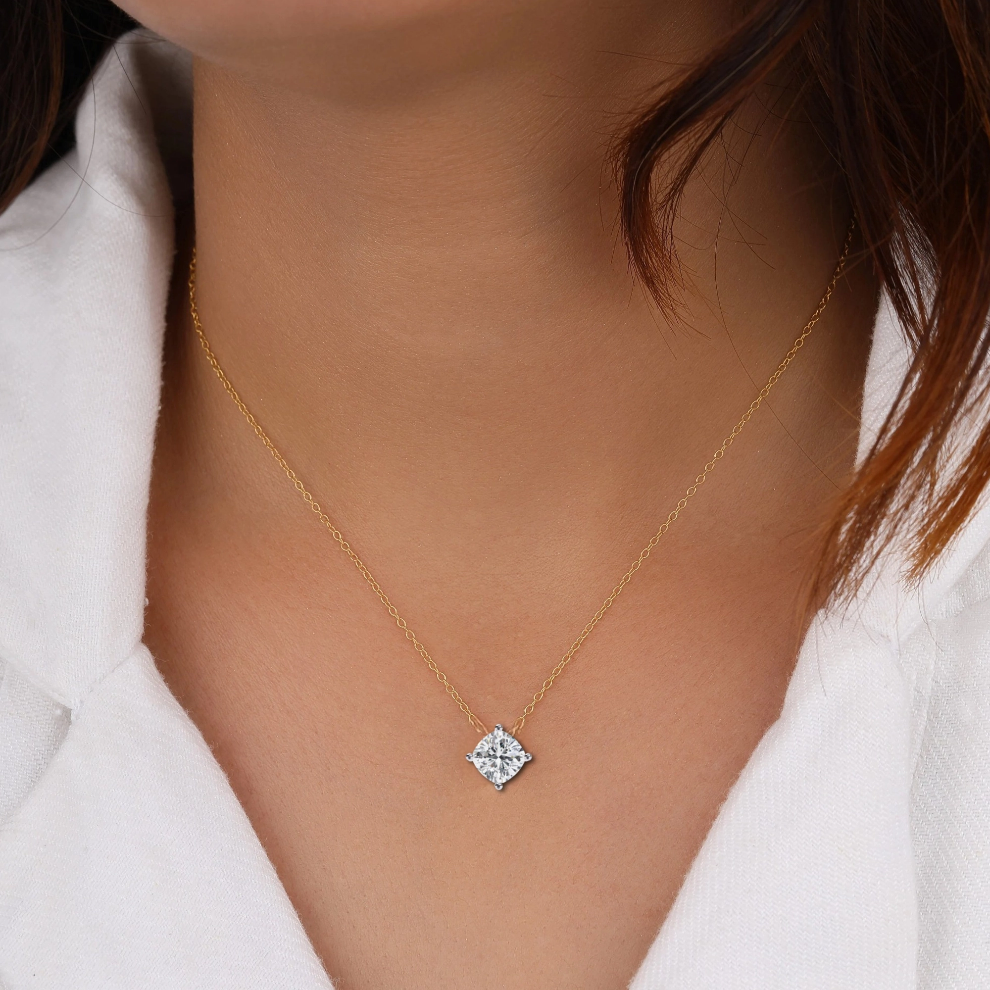 2 Ct Lab Grown Diamond Pendant 7.30 mm Cushion shaped Lab Grown Diamond Solitaire.