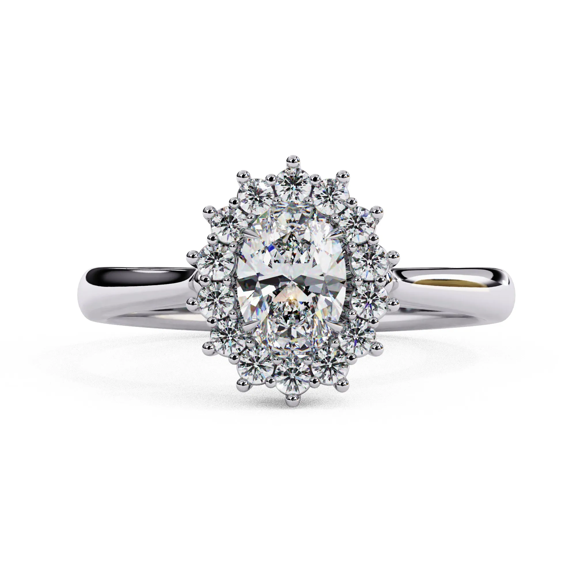Lab Grown Diamond Ring 6 x 4 mm Oval shaped Lab Grown Diamond Solitaire with 14 x 0.015 Ct Round 1.50 mm lab grown diamonds.
