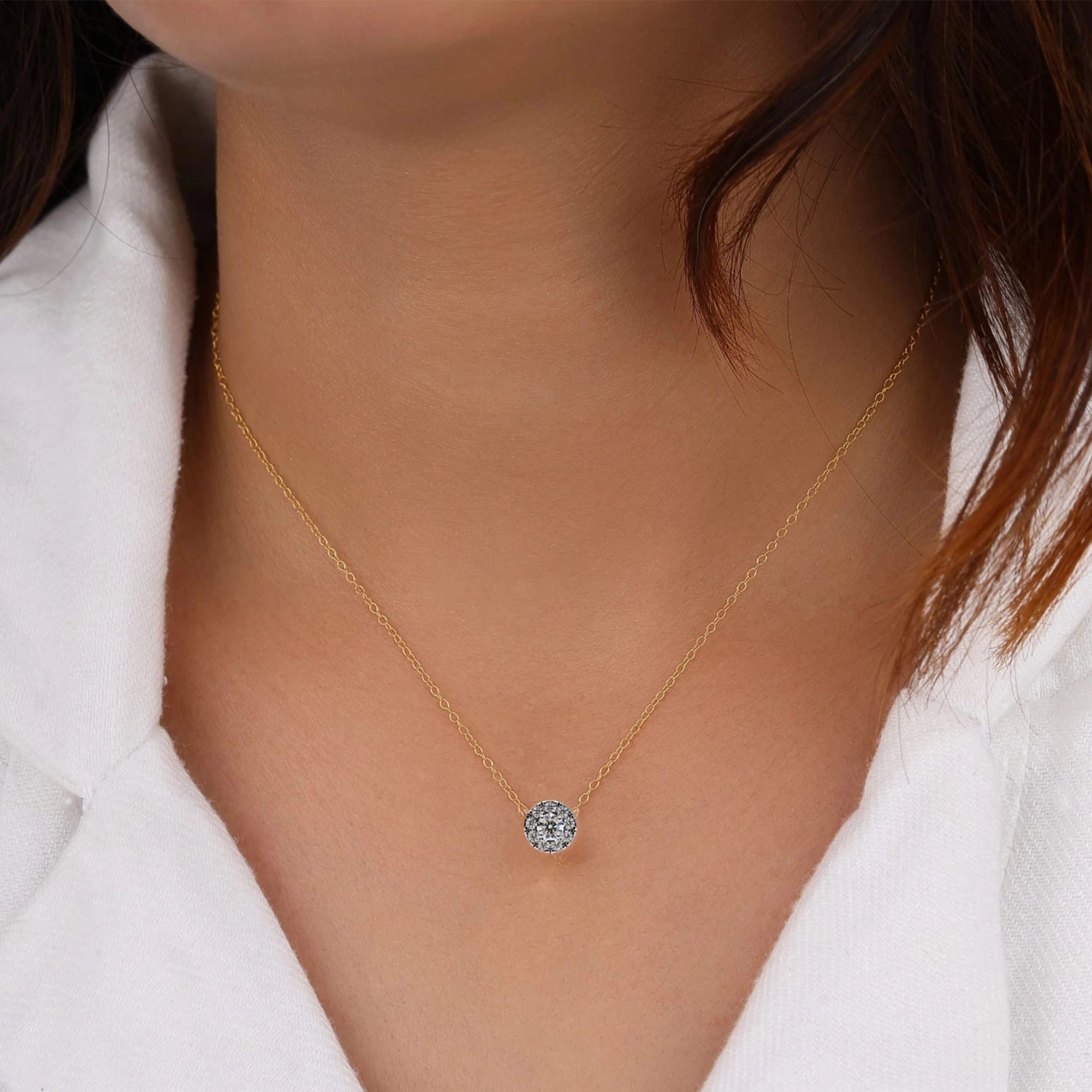 Lab Grown Diamond Pendant 3.00 mm Round shaped Lab Grown Diamond Solitaire with 11 x Round 1.50 mm lab grown diamonds.